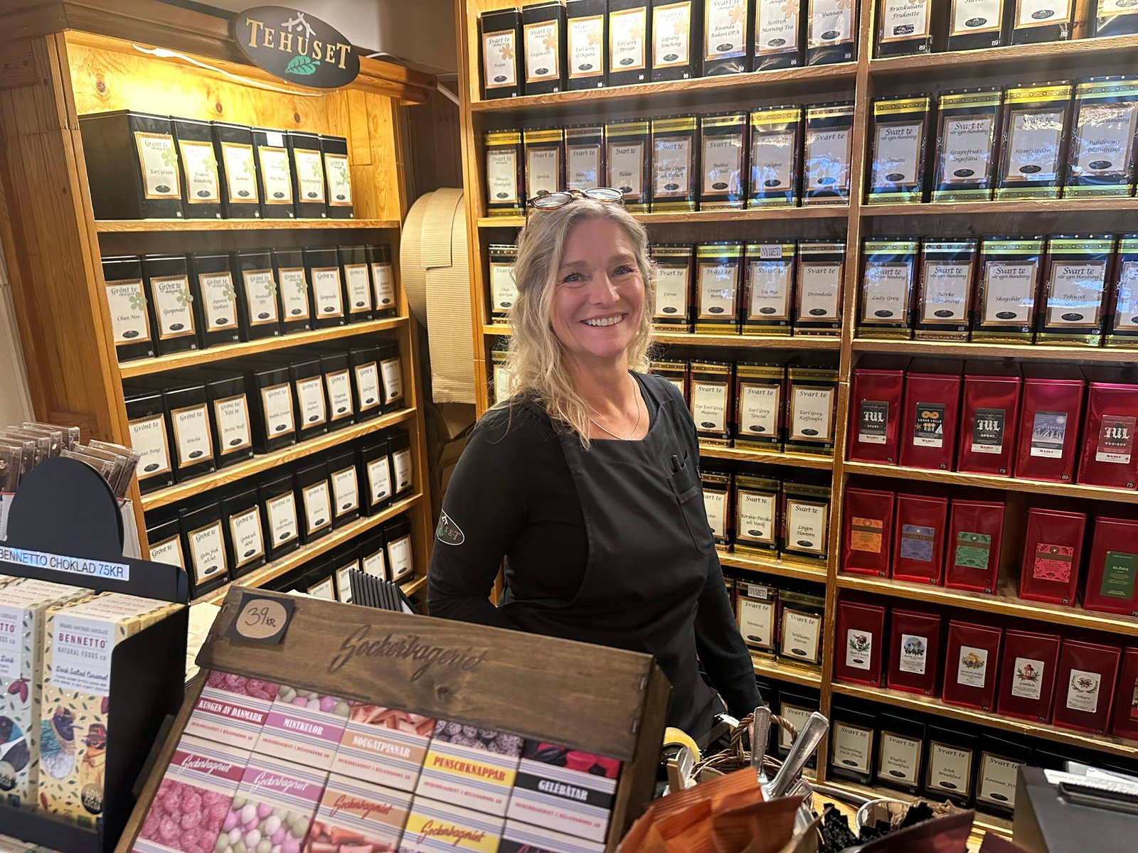 – Jag har nu drivit Tehuset i 14 år. Butiken har dock funnits i över 25 år här på Köpmangatan. Om jag har några planer på att flytta? Nej, nej! Några sådana planer finns inte. Vi har väldigt många stammisar som kommer och handlar, allt från unga till äldre, säger Ingela Nilsson när vi samtalar om Tehuset.