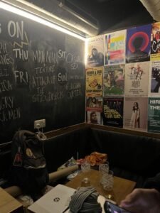 Tiden går långsamt i ett par minuter. Mitt sällskap beställer en kopp te vilket inte gör att det går snabbare. Tjejen i baren har klivit av sitt skift och kommer ut för att hämta sin jacka som ligger på golvet i ett hörn bakom ett bord med halvdruckna glas. Hon lyfter ett av dem. “Is this yours?” frågar hon och utan att invänta svaret tar hon en djup klunk, knäpper sin duffel och försvinner ut i mörkret.