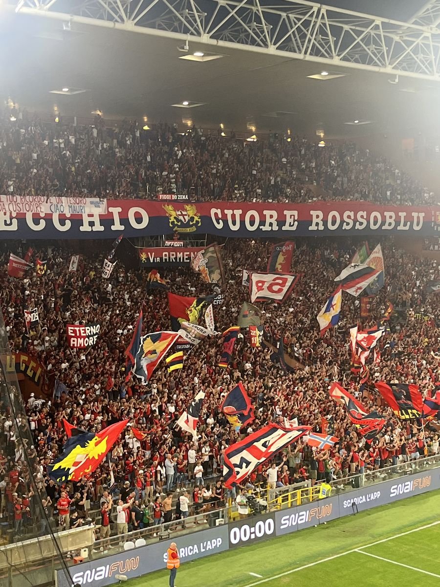 Efter maten blir det fotboll. Med hjälp av ChatGPT har jag skrivit ett mejl på italienska till Genoas kansli och fått en plats på pressläktaren till matchen mot Juventus. Två timmar innan avspark ekar Juventus sånger på Luigi Ferraris.